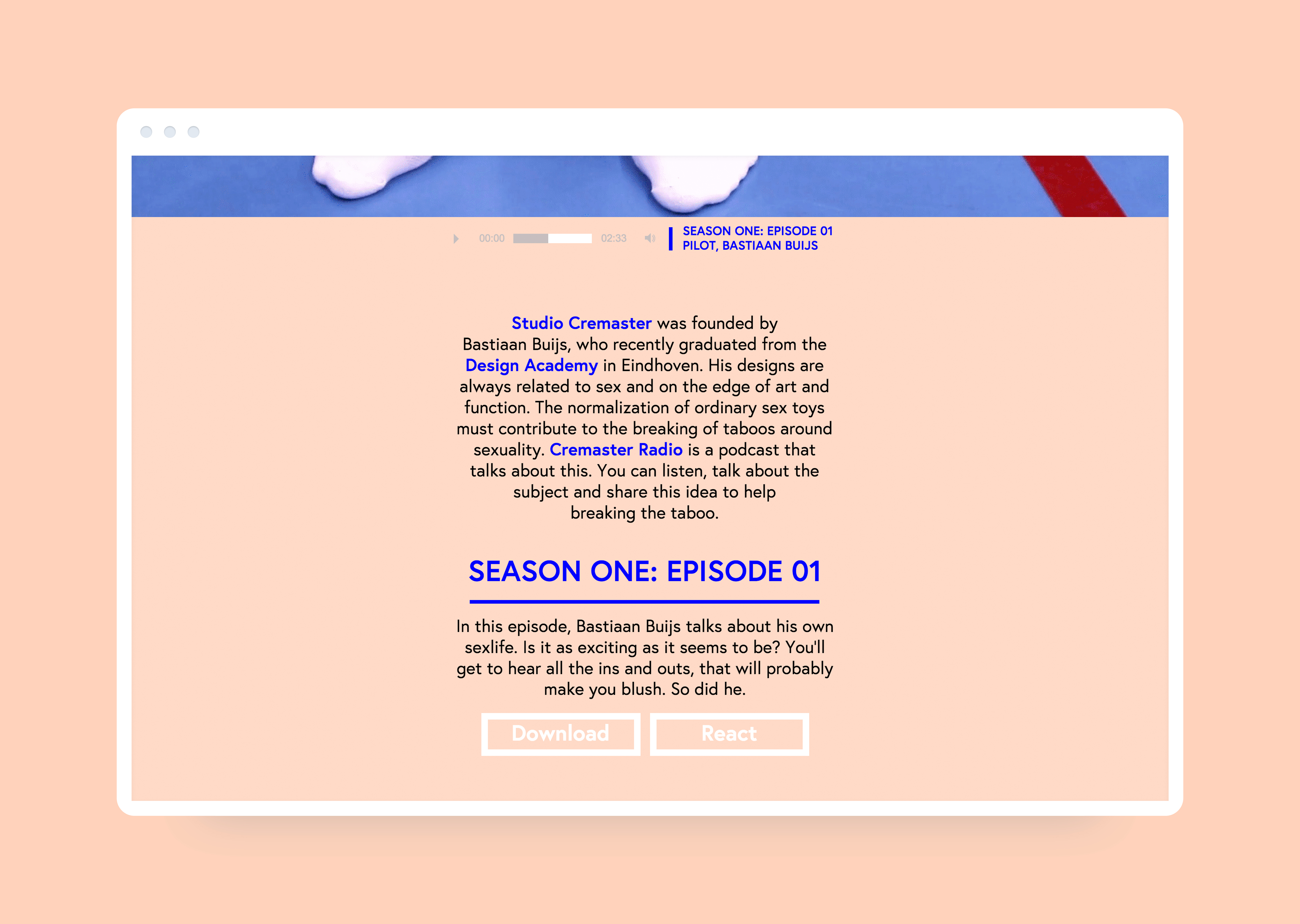 Bastiaan Buijs, afgestudeerd aan de Design Academy in Eindhoven en oprichter van Studio Cremaster,
